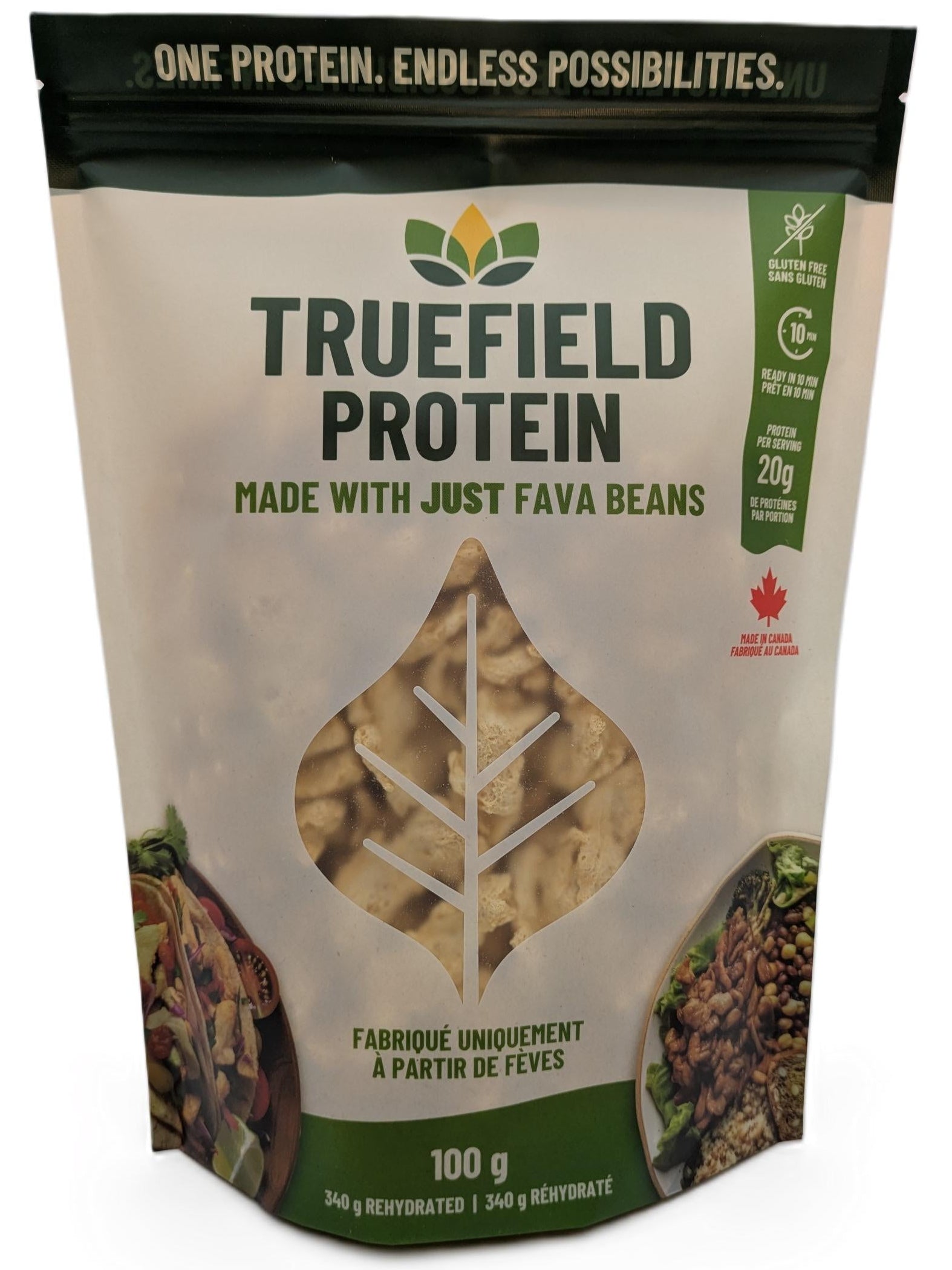 Truefield Protein is a clean, single-ingredient plant-based protein made from 100% Canadian fava beans — nothing else. Naturally high in protein, it delivers a firm, satisfying texture that holds up beautifully in any dish, from stir-fries to stews.